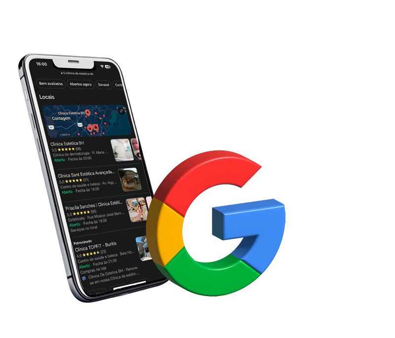Alguém digita no Google “estética perto de mim” ou “clínica de limpeza de pele” e o nome do seu espaço aparece logo nos primeiros resultados.